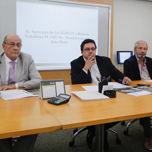 Ao abrir a reunião na última quinta-feira (27/04), o presidente Nacional das Cebrasse, João Batista Diniz, salientou a necessidade de a reforma trabalhista ser aprovada no Senado, “para pôr o Brasil em pé de igualdade com os Estados Unidos e países da União Europeia”. Destacou também a relevância de todos os pontos da matéria para a saúde do mercado gerador de emprego e renda, “principalmente em relação ao fim da contribuição sindical obrigatória”.