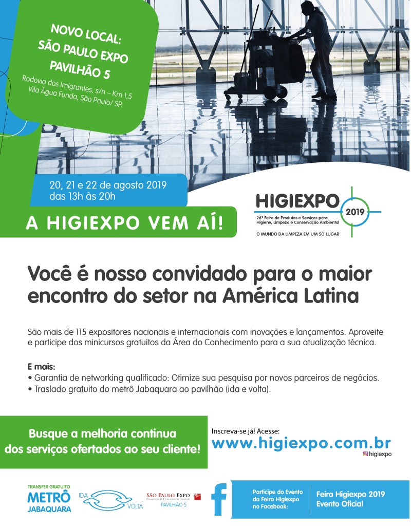 No período de 20 a 22 de agosto, a Febrac terá stand em uma das maiores feiras de produtos e serviços para higiene, limpeza e conservação ambiental da América Latina, a Higiexpo – Feira de Produtos e Serviços para Higiene, Limpeza e Conservação Ambiental.