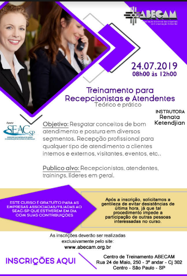 Em parceria firmada entre a ECA-USP e o SEAC-SP, tendo em vista o objetivo de incentivar os participantes a cursar um programa de alta relevância no mercado atual, está oferecendo um desconto 10% nas mensalidades do Curso Gestão de Comunicação e Marketing (ECA-USP), a todos os inscritos cuja empresa é associada ao SEAC-SP.