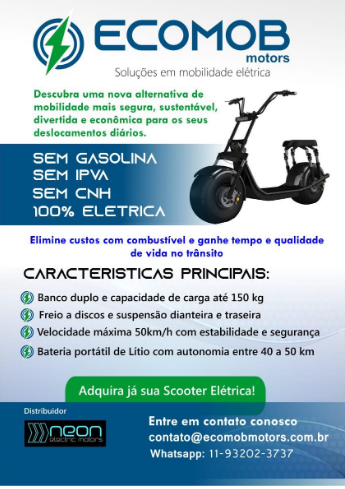 Visando às empresas de entidades associadas à Cebrasse a possibilidade de oferecer a seus funcionários condições de operarem de forma sustentável durante as demandas junto a seus tomadores, a EccoMob Mottors lhes disponibiliza a Scooter elétrica – veículo que possibilitará aos vigilantes, por exemplo, fazerem rondas mais silenciosas ao se deslocarem por um veículo mais sustentável, confortável, seguro e eficaz nas dependências e arredores de empresas, condomínios, shoppings, lojas, escolas, hospitais, restaurantes, bares e outros locais.