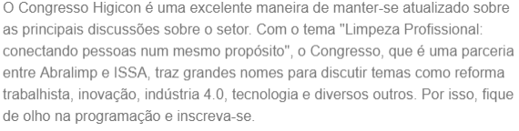 ASSOCIADOS SEAC-PR QUE DESEJEM IR À HIGIEXPO, ENTRE EM CONTATO PARA SABER OS BENEFÍCIOS QUE O SINDICATO PODE DISPONIBILIZAR PARA VOCÊ! NÃO FIQUE DE FORA DESTE GRANDE EVENTO! |