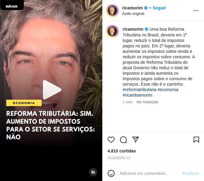 CEBRASSE APOIA DEFESA DE RICARDO AMORIM: SETOR DE SERVIÇOS NÃO PODE TER AUMENTO DE IMPOSTOS