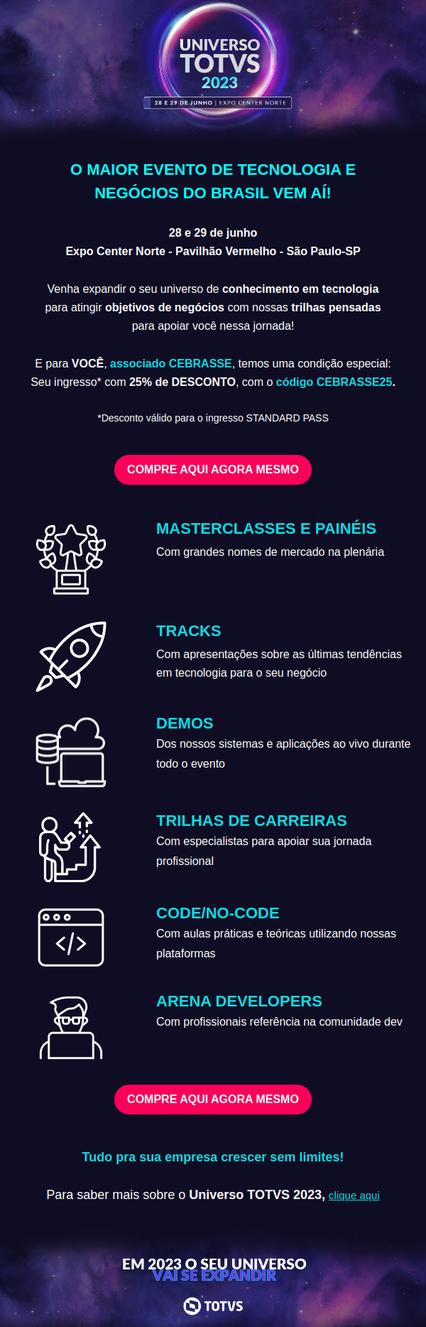 Local: TOTVS Matriz – Av. Braz Leme, 1000 – Casa Verde – SP