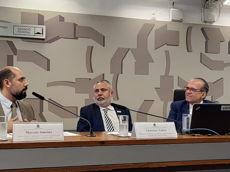 Marcelo Almeida, Diretor de Relações Governamentais da ABES, defendeu a importância da capacitação e da inclusão no mercado tecnológico durante uma audiência pública no Senado Federal, realizada pela Comissão de Ciência e Tecnologia nesta quarta-feira (03/07). Ele argumentou que essas ações são fundamentais para a construção de um Brasil mais digital e menos desigual. A sessão foi conduzida pelos senadores Fernando Dueire e Astronauta Marcos Pontes.
