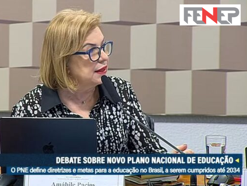 A vice-presidente da FENEP (Federação Nacional das Escolas Particulares), professora Amábile Pácios, participou, na manhã desta terça-feira (22), da audiência pública promovida pela Comissão de Educação e Cultura do Senado Federal para discutir a proposta do novo Plano Nacional de Educação (PNE) 2024–2034. O encontro fez parte do ciclo de debates realizados pelo Senado com o objetivo de construir de forma colaborativa as diretrizes da política educacional brasileira para os próximos dez anos.