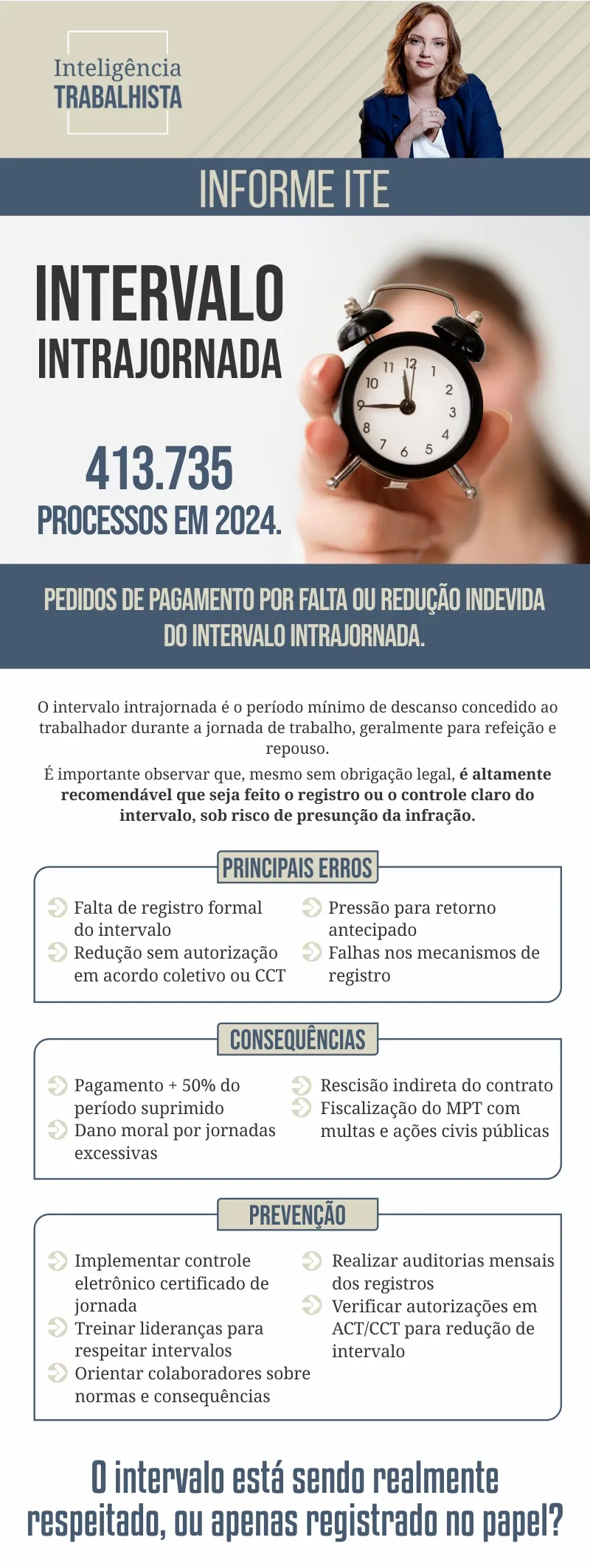 - Treinamento de lideranças operacionais, evitando orientações para encurtar ou interromper o intervalo,