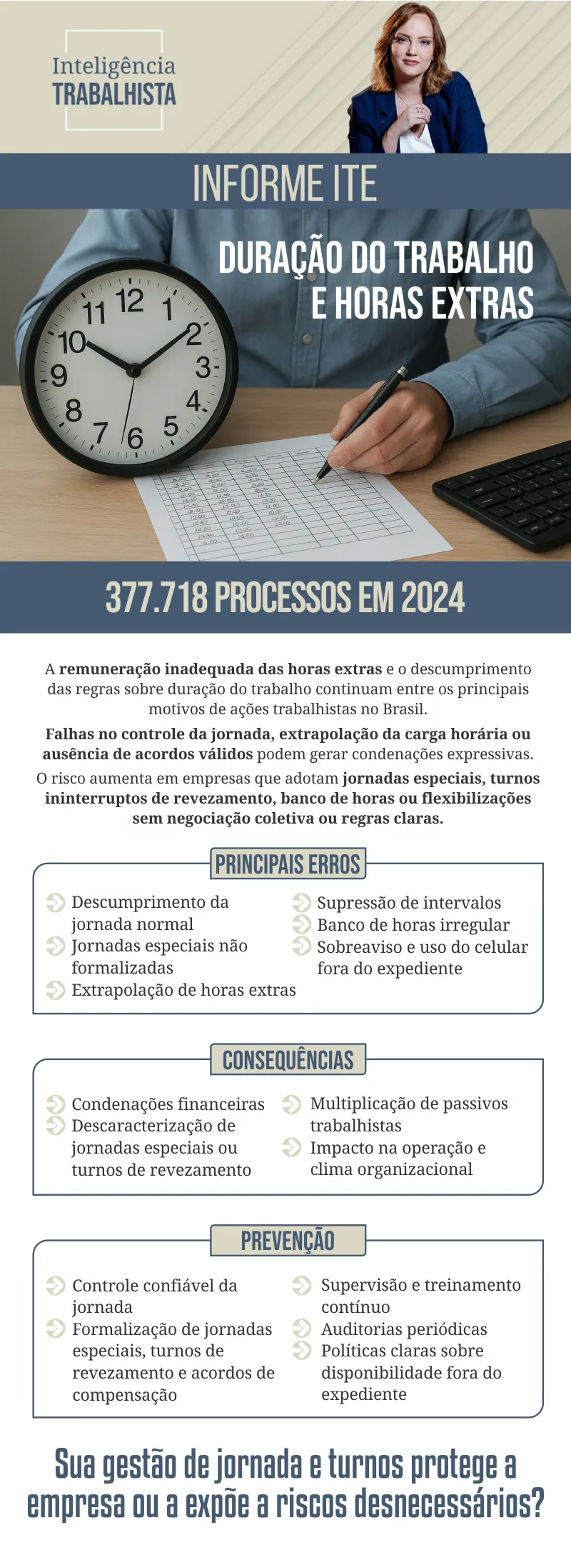 - Formação de passivos trabalhistas, com maior impacto em grandes equipes ou escalas complexas.