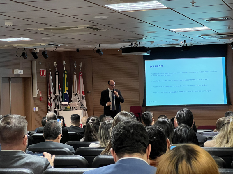 Segundo Calcini, os números da Justiça do Trabalho caminham para um recorde em 2025. Entre os fatores históricos que explicam esse fenômeno estão o elevado número de faculdades de Direito no país, a tradição protecionista de parte dos Tribunais Regionais do Trabalho e a entrada da Justiça do Trabalho como porta inicial para jovens advogados. Já entre os fatores atuais, o palestrante destacou a taxa Selic, o represamento de processos durante a pandemia e o aquecimento do mercado de serviços – justamente o setor mais impactado pela alta litigiosidade .
