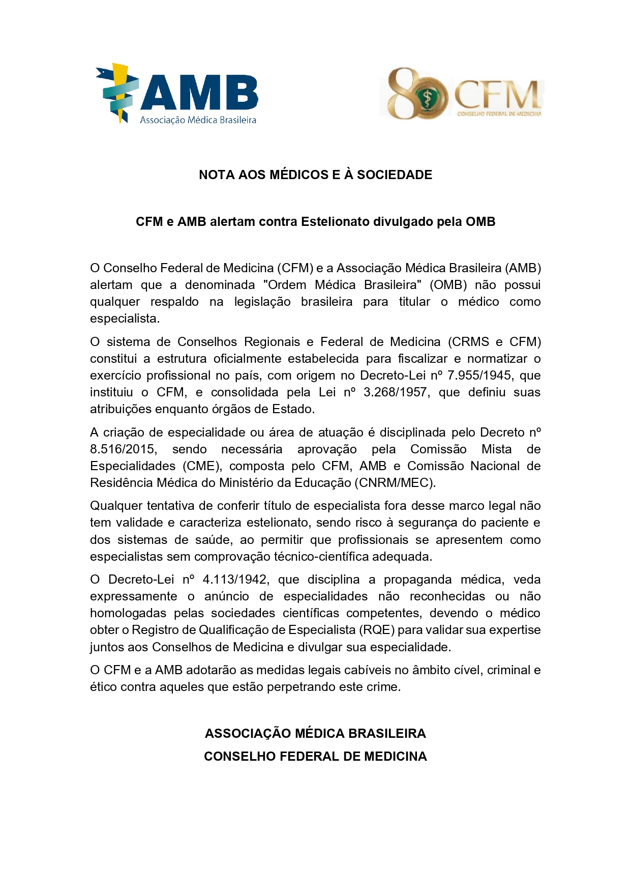 Fonte: https://amb.org.br/noticias/nota-oficial-cfm-e-amb-alertam-contra-estelionato-divulgado-pela-omb/