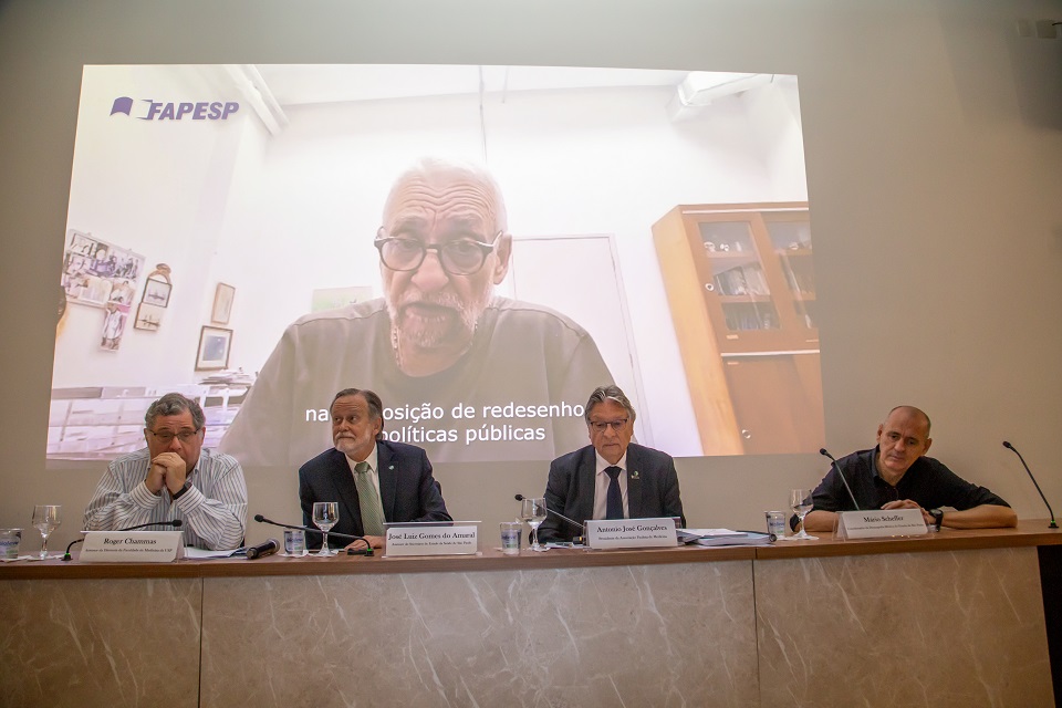 Roger Chammas, assessor da Diretoria da FMUSP, relatou que, para a faculdade, realizar um estudo deste porte é emblemático. “Eu tenho o privilégio de estar aqui representando a Diretoria da Faculdade de Medicina da USP e tenho certeza de que vou sair daqui, como muitos de vocês, com a clara impressão de que o diagnóstico está feito. Parabéns por este excelente trabalho. Eu tenho certeza de que nós vamos conseguir aproveitar a nossa realidade e mostrar mais uma vez o protagonismo de São Paulo para além das fronteiras do estado e mostrar que nós podemos protagonizar, sim, a revolução sanitária que o nosso País precisa, formando as pessoas que vão atuar no Brasil como um todo.”