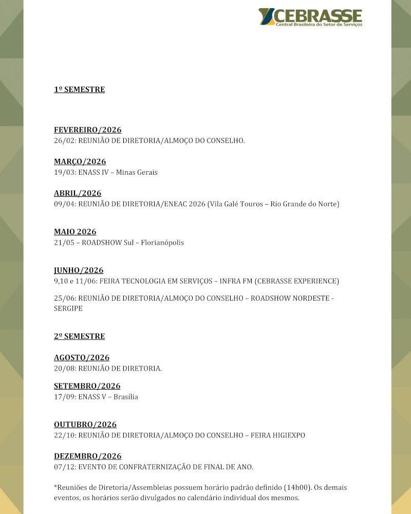 No último dia 24, foi realizada a cerimônia de posse do presidente da Cebrasse, João Diniz, e do presidente do Sinfac, Hamilton de Brito, reunindo também integrantes das diretorias das duas entidades. Confira o vídeo com entrevista dos diretores que tomaram posse.